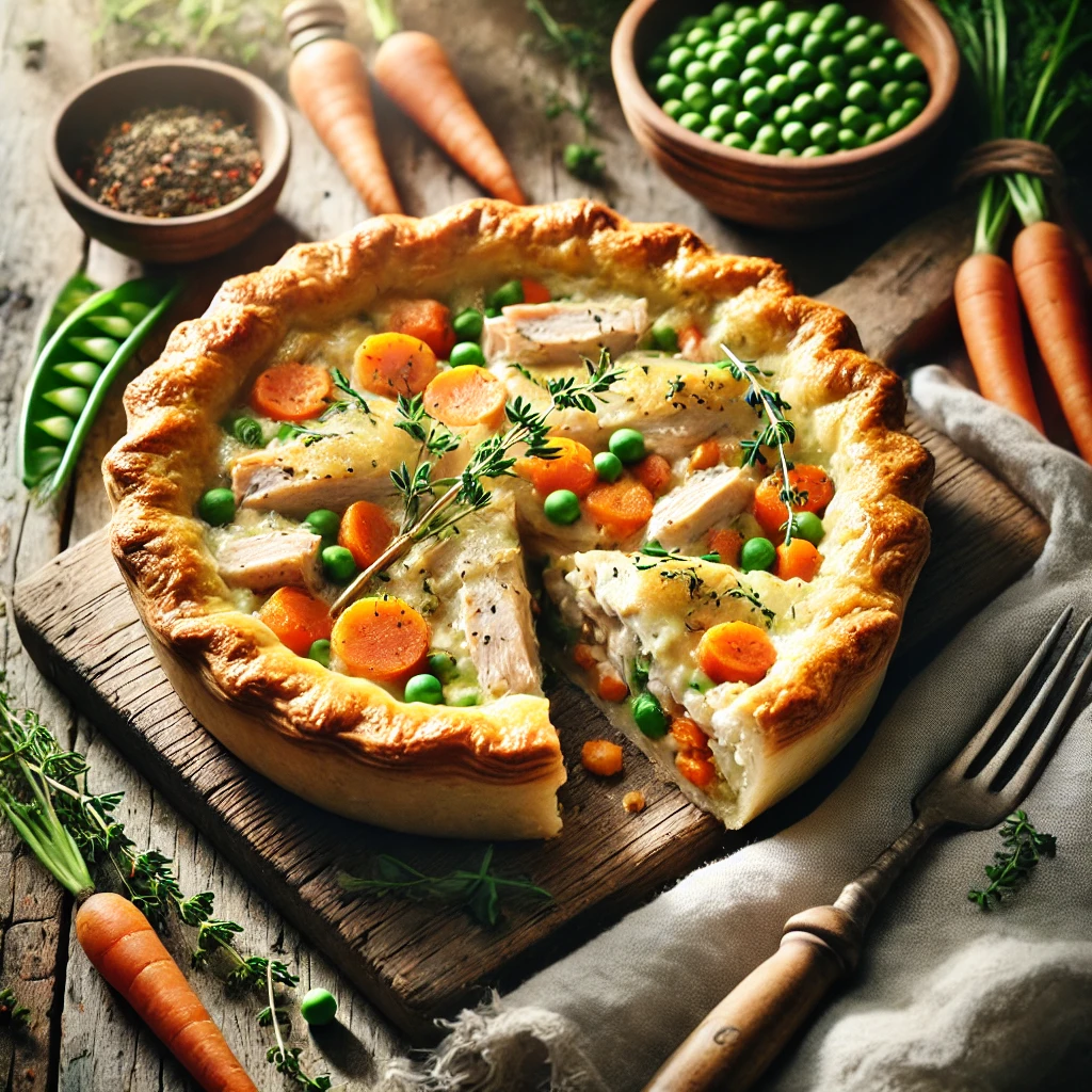 Tender pieces of pasture-raised chicken paired with sweet, earthy leeks, carrots, and peas in a creamy, herb-infused sauce. Encased in a flaky, golden pastry, this pie delivers protein, fiber, and flavor in every bite.